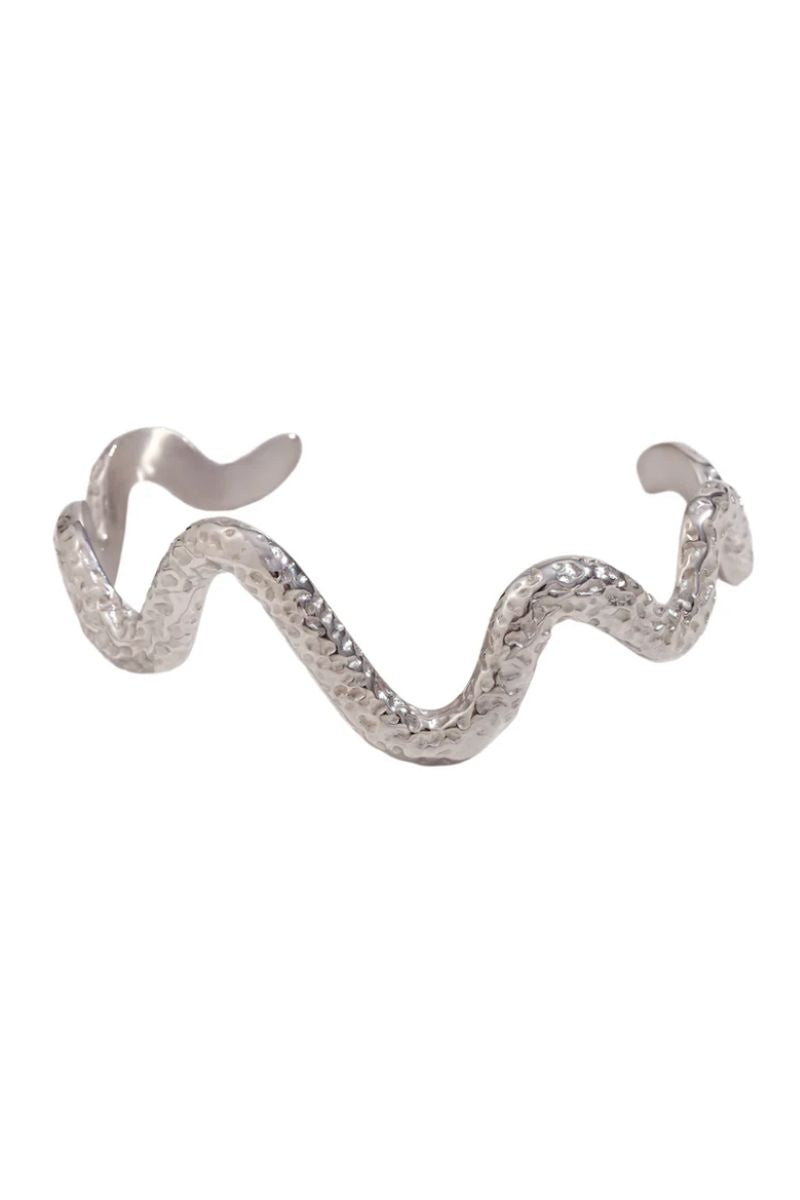 With a hammered texture and snake shape design, the Julia Silver Cuff Bangle adds a bold, unique touch to any look. Available in both gold and silver, it’s a versatile piece that can be worn solo or stacked for extra impact.