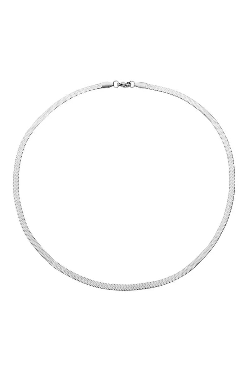 The Luna Silver Snake Chain Necklace offers a minimalist, contemporary design with smooth, continuous links. A timeless piece that complements any style, whether worn alone or layered.