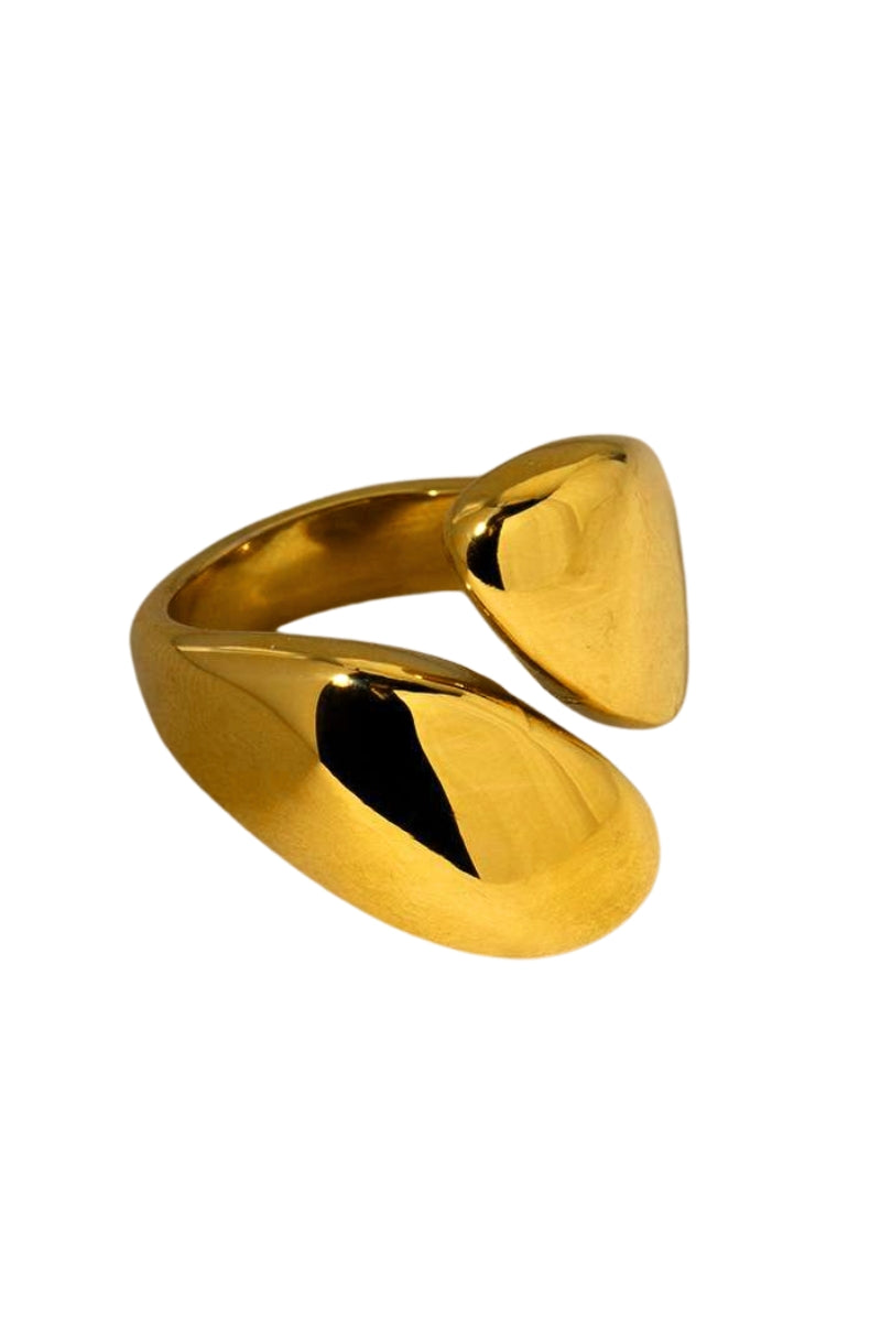The Coupled Ring features a single open band with a smooth, sculptural finish. Its clean, modern design makes it perfect to wear alone or stacked with other rings.