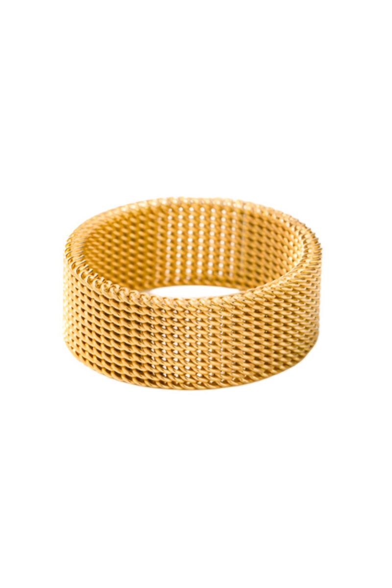 The Farah Gold Ring features a refined mesh chain design, blending texture and elegance for a modern yet timeless look. A bold addition to any jewellery collection.
